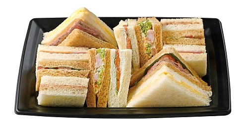 ローストビーフサンド、ボンレスハムサンド、トマトサンド、ツナサラダサンド、海老とブロッコリーのサンド、スモークサーモンとクリームチーズのサンド