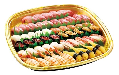 本まぐろ(大とろ)、本まぐろ(中とろ)、本まぐろ(赤身)、活〆真鯛、サーモン、いくら、うに、帆立、ずわいがに、車海老、数の子