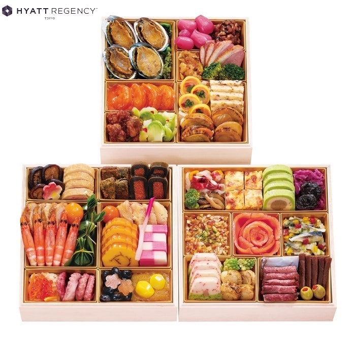 - 日本初のハイアットホテルとして開業した「ハイアット リージェンシー 東京」星野勝明総料理長が監修。多彩な料理が満載。お祝いの席にふさわしい贅沢な三段重です。