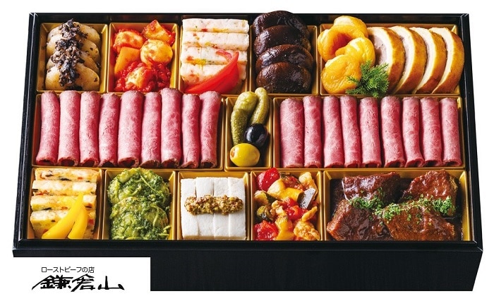 - 【一段重】海老のアンチョビ入りタプナードソース、パプリカとモッツァレラチーズ トマトカプレーゼ、サーモンテリーヌ、赤パプリカマリネ、干し椎茸のバルサミコ酢煮、クリームチーズ杏子、ハンバーグのパイ包み焼き、黒毛和牛モモローストビーフ(赤ワイン漬け)、コルニッション、オリーブ2種、鶏と野菜のチーズ焼き、黄色パプリカマリネ、帆立の葱生姜ジェノベーゼソースかけ、ポーク白ワイン煮 粒マスタード、ラタトゥイユ、黒毛和牛の赤ワイン煮込み、ローストビーフソース、西洋わさび