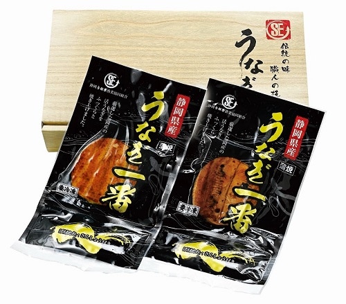 歴史あるうなぎ養殖技術で育て上げた静岡県産活鰻原料を使用したうなぎ蒲焼。たれは木桶仕込み丸大豆しょうゆ、本みりん、砂糖だけを使い遺伝子組み換えでない原料を分別使用しています。白焼工程で身をしっかり焼き、蒸し時間を長くとり、ふっくら香ばしく焼き上げた関東風の蒲焼です。
