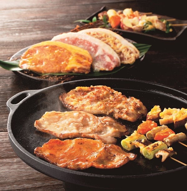 きめ細かい肉質が自慢の霧島黒豚ロース肉を3種類のたれで味付けしました。