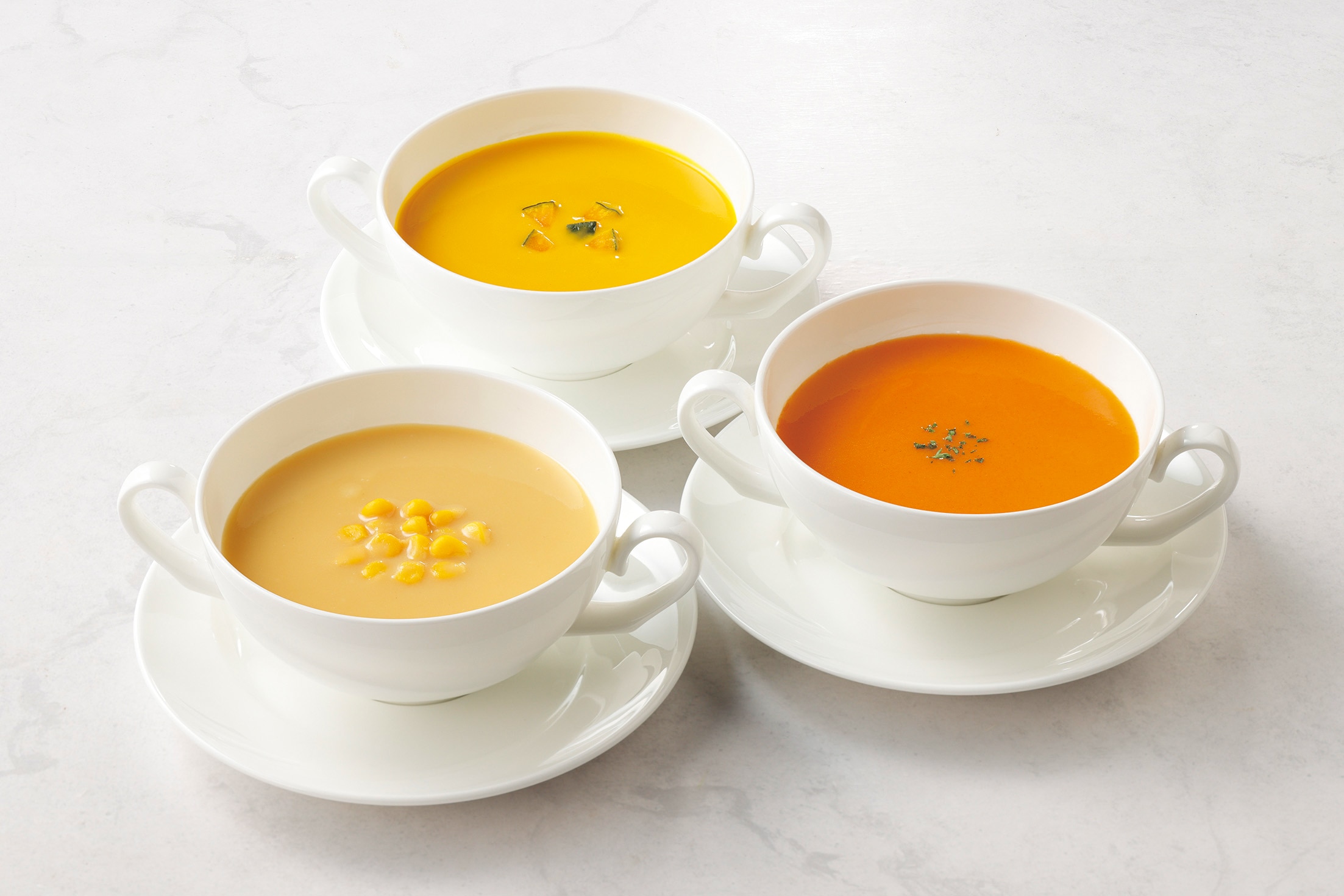 ホテルシェフによる選び抜いた素材、丹念な仕込み、美味しさの追求、洗練された技が生み出したスープセットです。