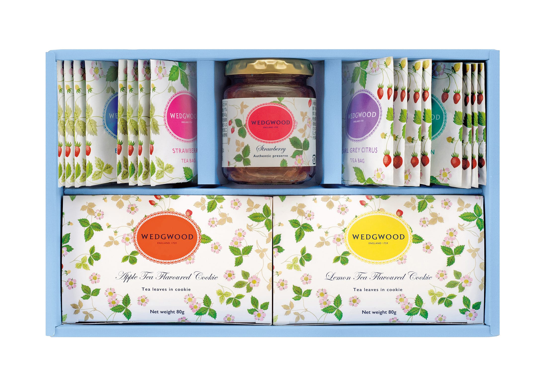 ブレックファスト・ストロベリー・アールグレイシトラス・アフタヌーン各2g×各4、ストロベリージャム140g・レモンティークッキー・アップルティークッキー各80g×各1