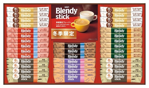 ブレンディスティック(カフェオレ14g×6、甘さなし11.4g×3、紅茶オレ11g×4、ヘーゼルナッツオレ11g×6、リッチミルクカフェオレ8.9g・濃厚ほうじ茶オレ11.7g×各8)