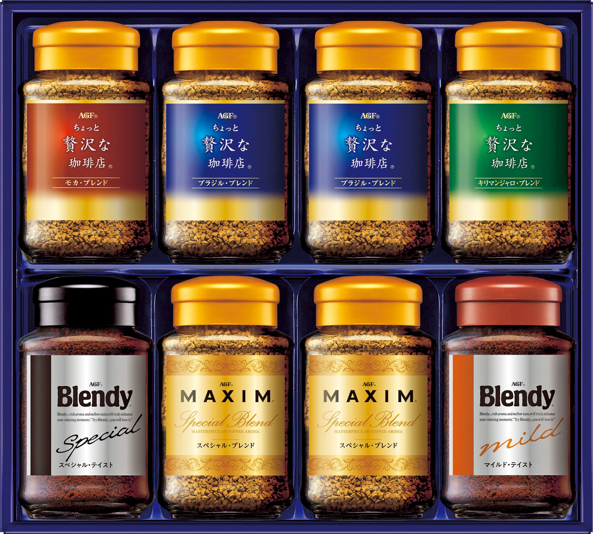 ちょっと贅沢な珈琲店(ブラジルブレンド65g×2、モカブレンド・キリマンジャロブレンド各65g)、マキシムスペシャルブレンド65g×2、ブレンディ(スペシャルテイスト・マイルドテイスト各70g)
