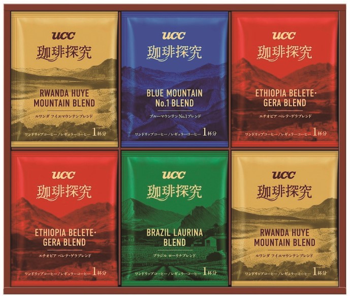 ジャマイカ ブルーマウンテンNo.1ブレンド×3、ブラジル ローリナブレンド×3、エチオピア ベレテ・ゲラブレンド×6、ルワンダ フイエマウンテンブレンド×6