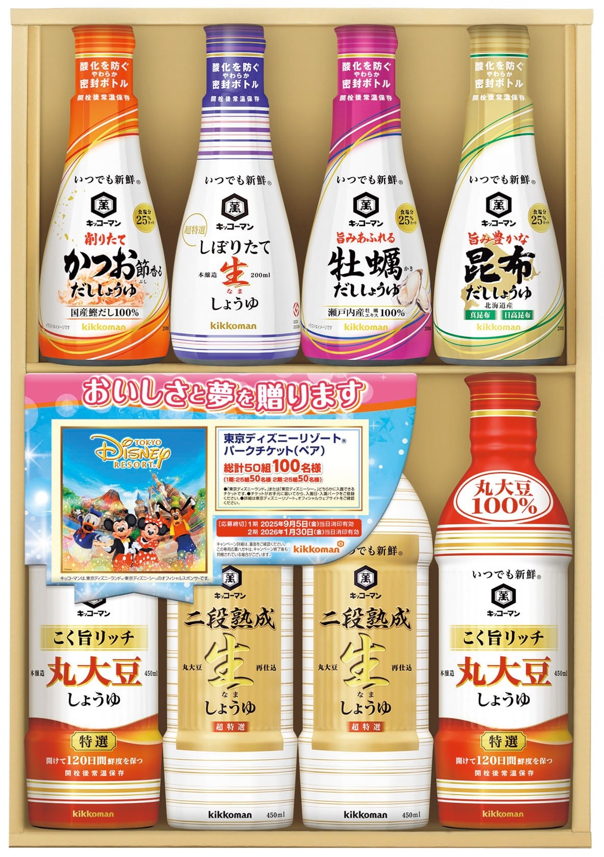 いつでも新鮮 削りたてかつお節香るだししょうゆ200ml・しぼりたて生しょうゆ200ml・旨みあふれる牡蠣だししょうゆ200ml・旨み豊かな昆布だししょうゆ200ml×各1、こく旨リッチ 特選丸大豆しょうゆ450ml・超特選二段熟成生しょうゆ450ml×各2