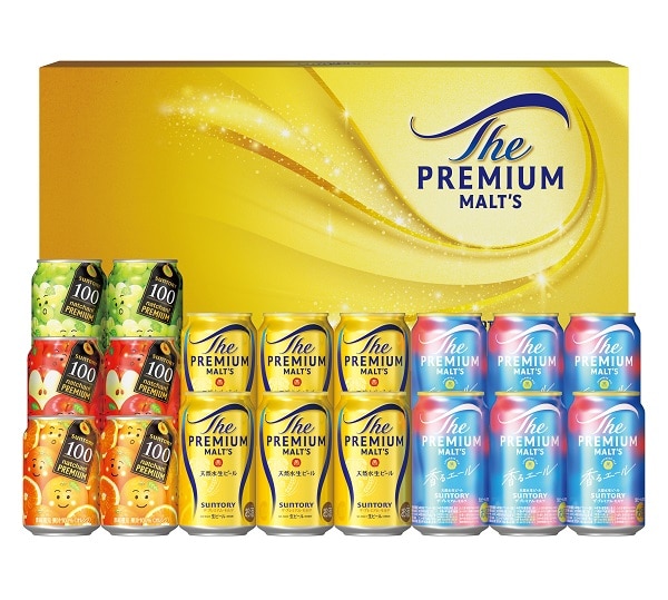 ザ・プレミアム・モルツ(350ml×6、香るエール350ml×6)、なっちゃんプレミアム100(オレンジ・りんご・白ぶどう各290g×2)
