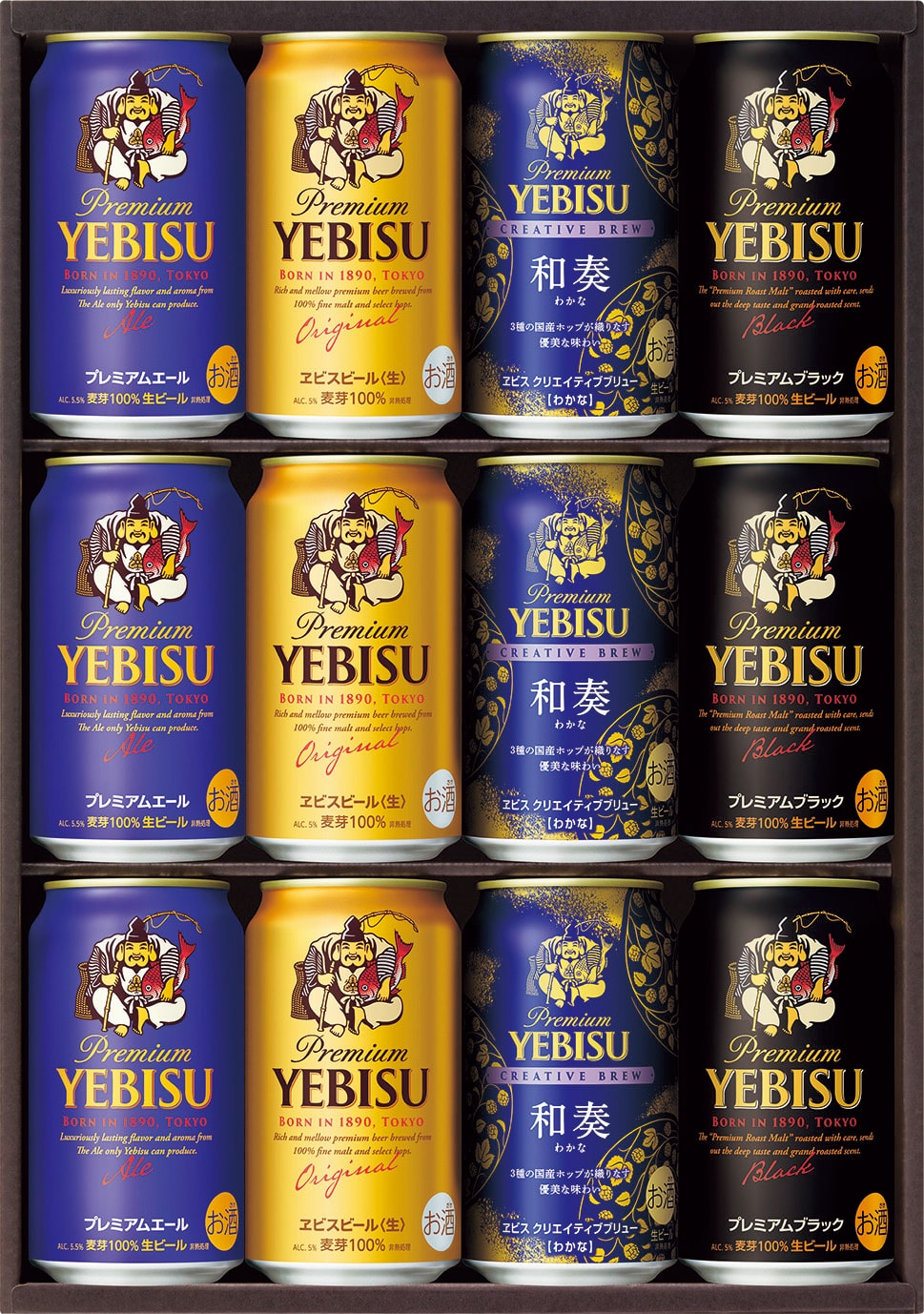 ヱビスビール350ml・ヱビス クリエイティブブリュー和奏350ml・ヱビス プレミアムエール350ml・ヱビス プレミアムブラック350ml×各3