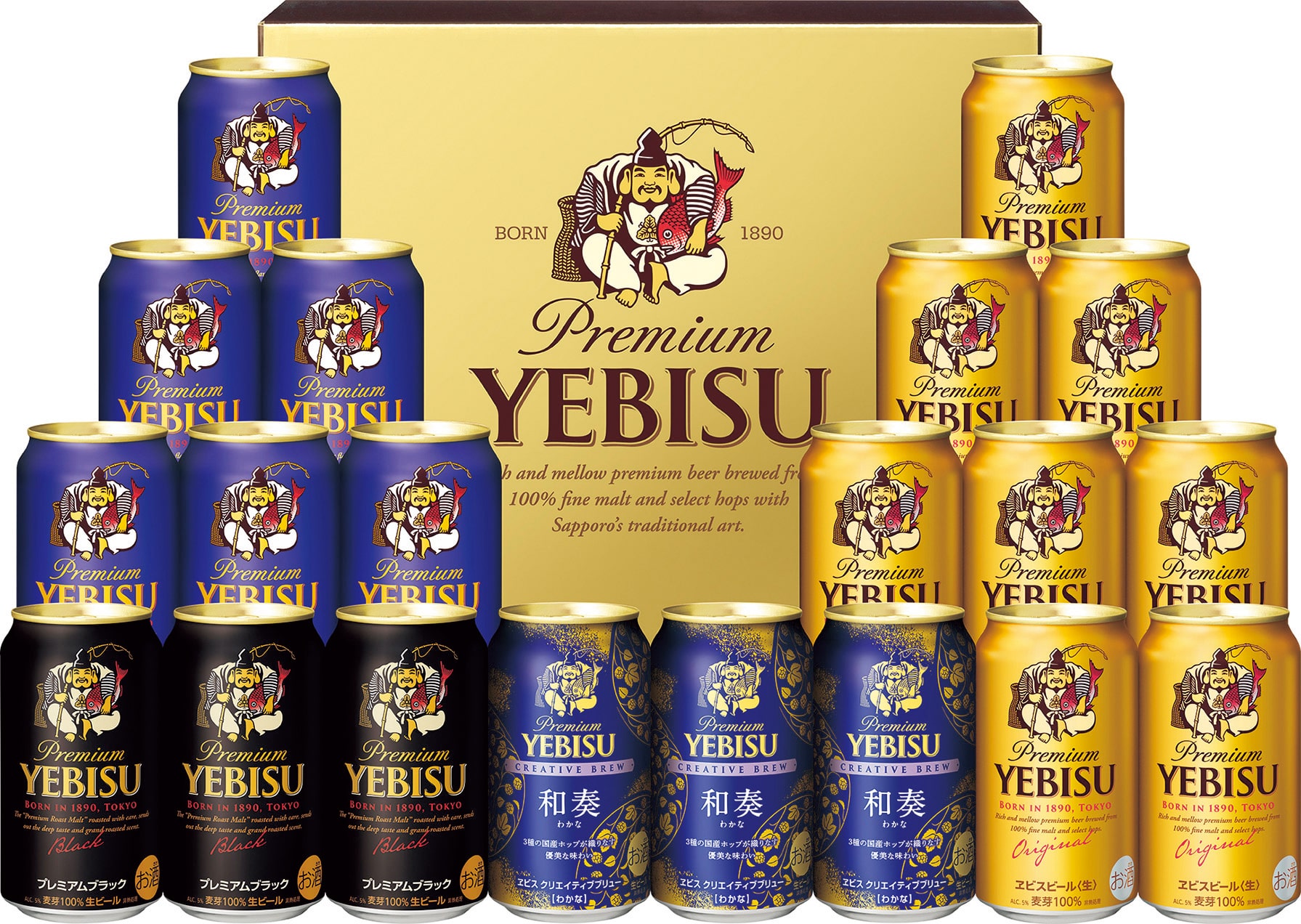 ヱビスビール350ml×8、ヱビス クリエイティブブリュー和奏350ml×3、ヱビス プレミアムエール350ml×6、ヱビス プレミアムブラック350ml×3
