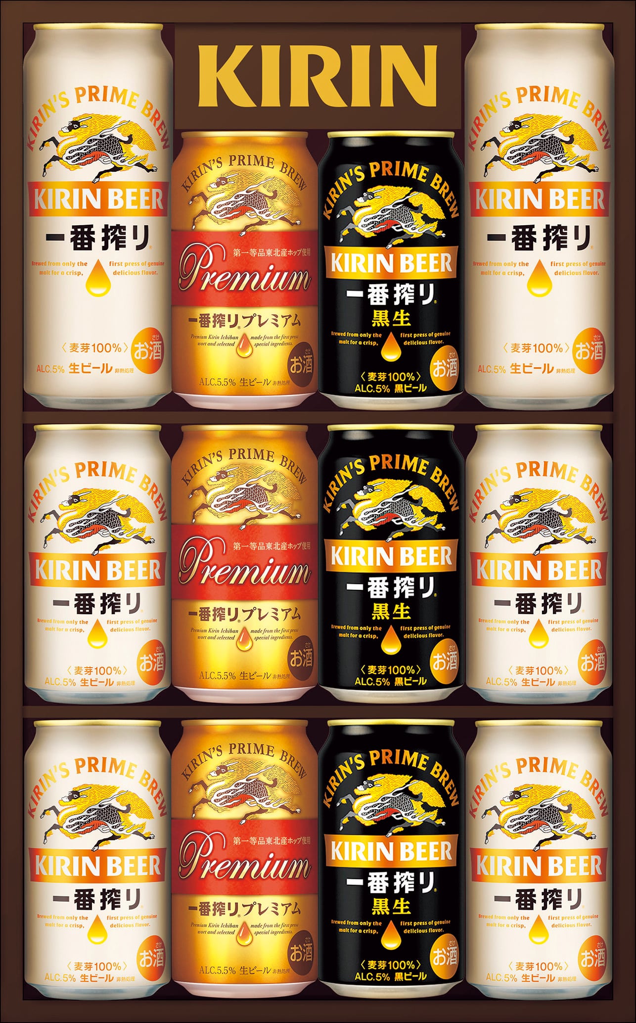 キリン一番搾り生ビール350ml×4、キリン一番搾り生ビール500ml×2、キリン一番搾り〈黒生〉350ml×3、一番搾り プレミアム350ml×3