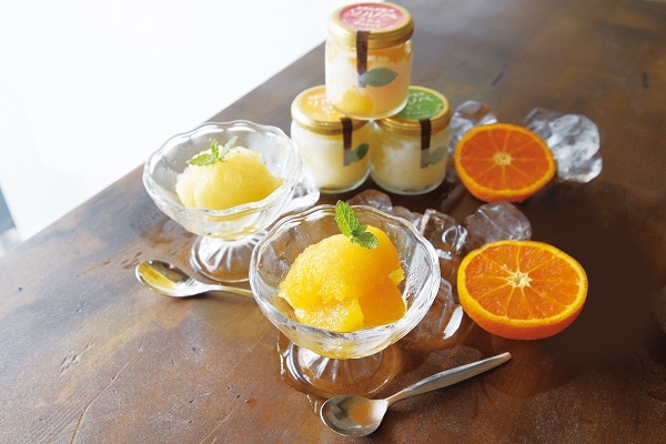 国産の柑橘果汁の果肉だけを搾ったジュースを使った香り高くなめらかな食感のソルベです。自宅までは常温で届き、お客様自身で必要な時に冷凍庫で凍らせて召し上がっていただきます。