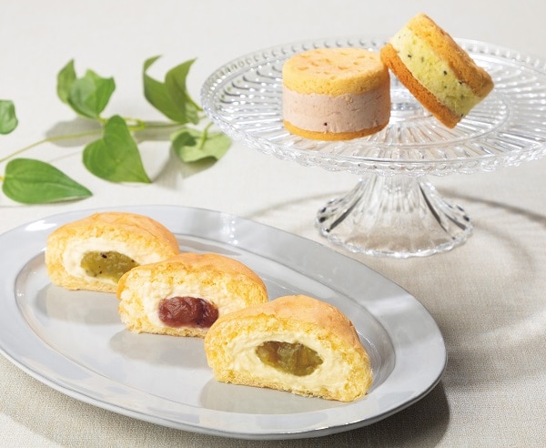 果実なくりーむパン(シャインマスカット)72g×2、果実なくりーむパン(赤ぶどう)72g・果実なくりーむパン(ほらどキウイ)71g×各1、バターサンドウィッチ(赤ぶどう)57g・バターサンドウィッチ(キウイフルーツ)57g×各2