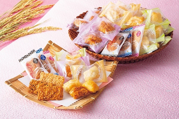 大正9年に創業した「法善寺あられ」。国産米にこだわりふっくらと焼き上げた‘ふく穂’あられとパリっとした食感の‘おこげめし’あられをそれぞれ3種の味を詰合せしました。