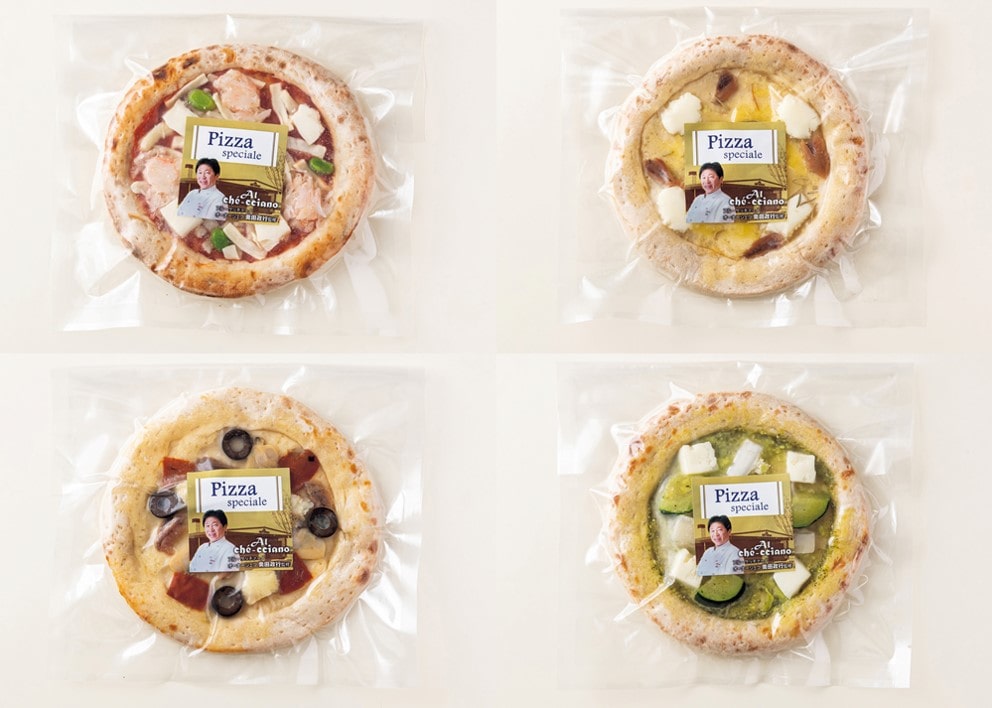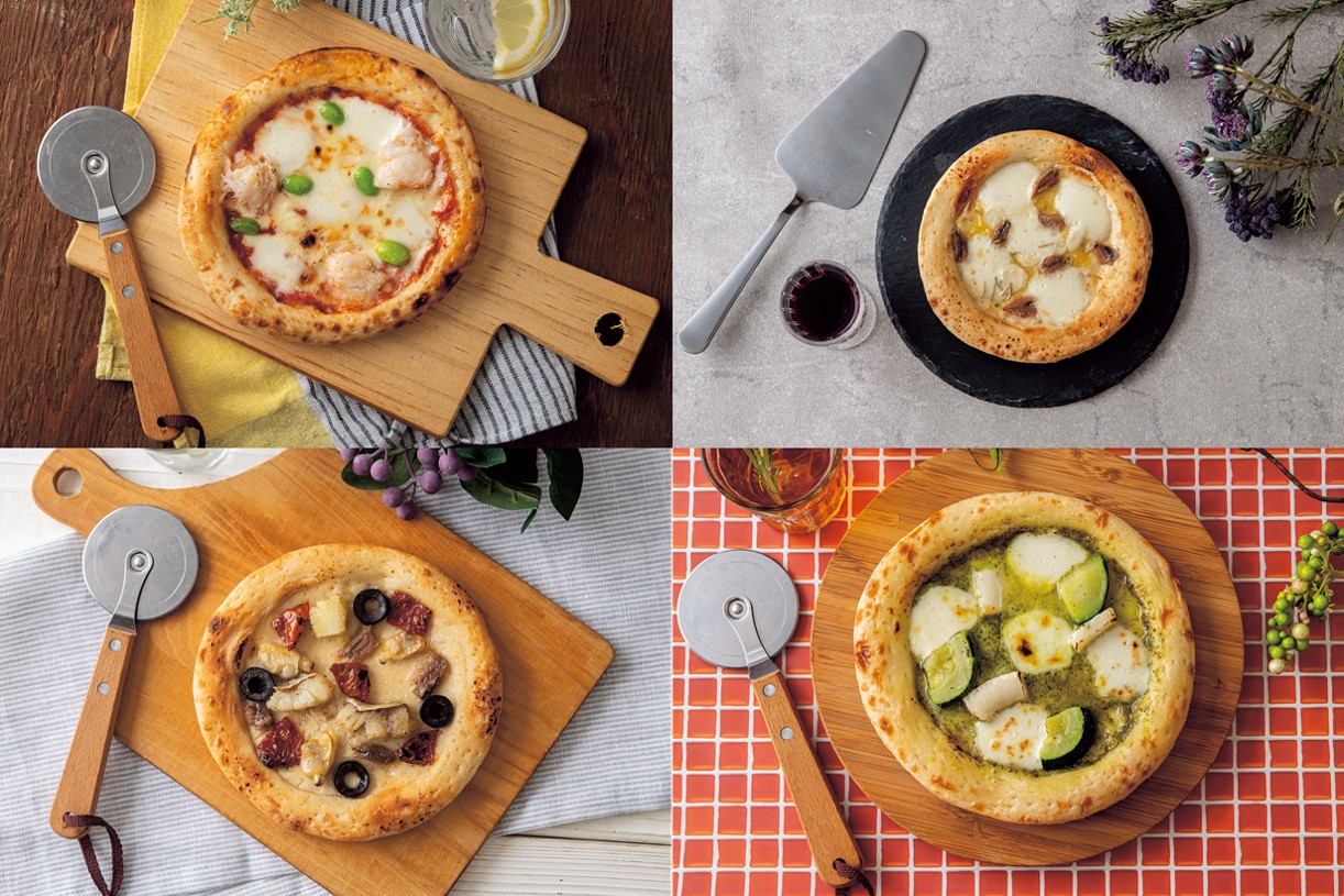 ズワイガニとだだ茶豆のトマトピザ130g・魚介たっぷりマリナーラ95g・シチリア産アンチョビとローストガーリック86g・ローストイカとイタリア産グリルズッキーニのジェノベーゼ105g×各1