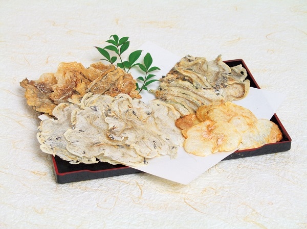 お魚を入れたせんべいではありません。お魚だけでつくった「ふんわり、さくっ」の新食感のせんべいです。