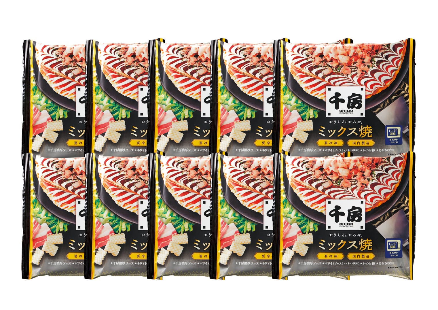 千房ミックス焼220g・お好み焼ソース25g・ホワイトソース10g・あおさのり0.2g・かつお節1g×各10
