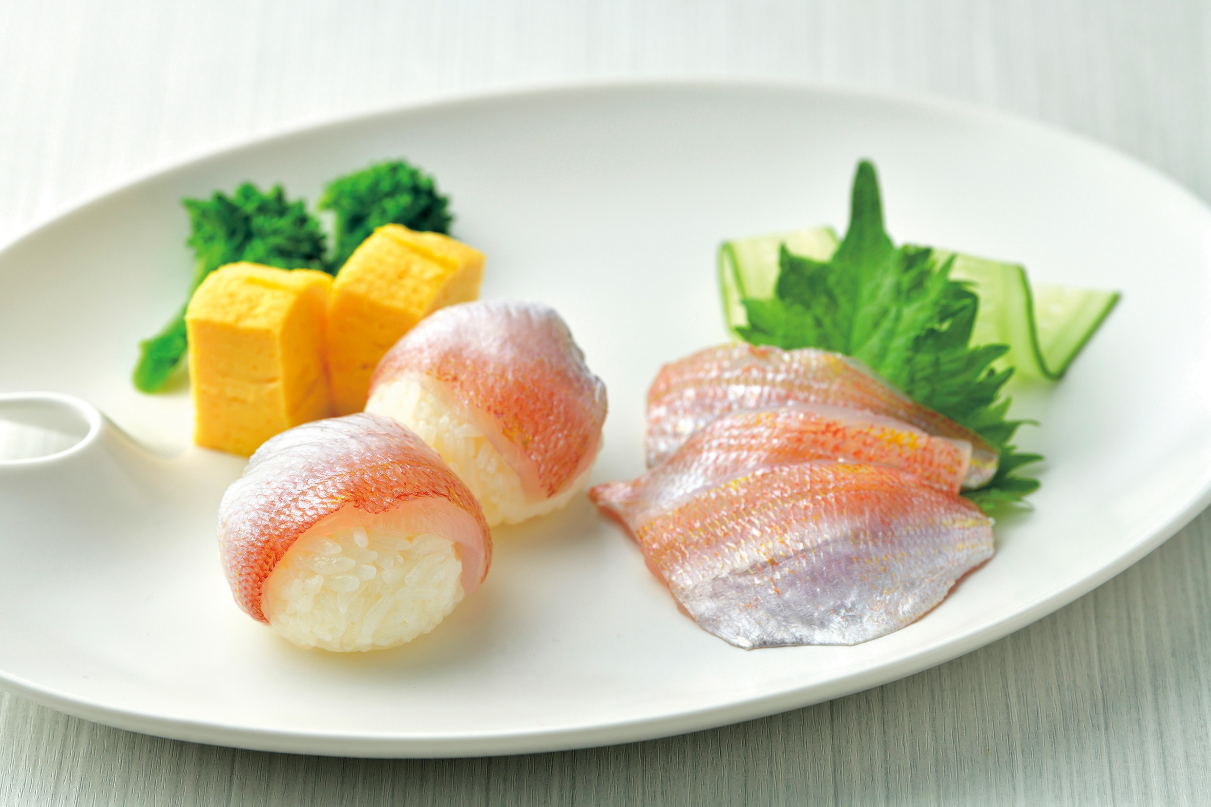 国産のレンコダイを手作業で素早く三枚におろし、赤穂の塩と、若狭地方で300年続く老舗の米酢のみで調味し、国産の杉の木樽に詰めました。