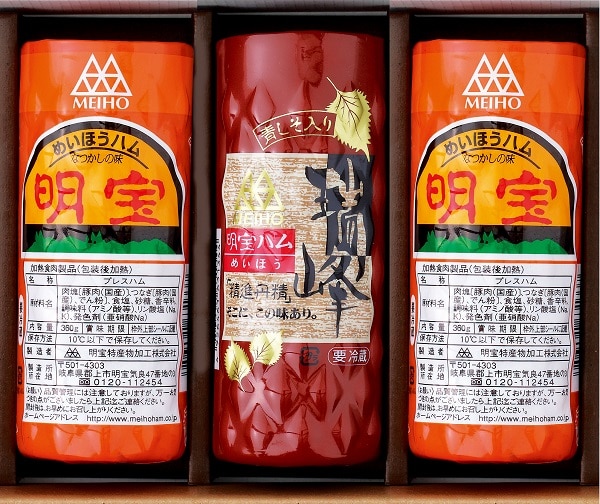 国産豚肉のみを使い、昔ながらの製法で作った旨味芳醇なハムです。プレーンタイプとガーリック・青じそフレーバーの詰合せ。