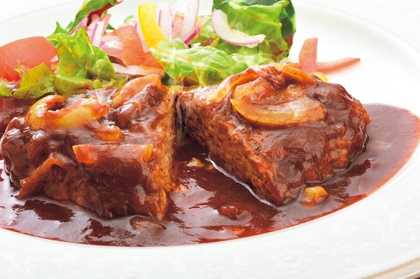 米沢牛と国産豚を合挽きにした、お肉の旨みをお楽しいただけるハンバーグです。グレイビーソースやマッシュルームペーストを使用し、深いコクと濃厚な味わいに仕上げました。湯煎でお召し上がりいただけます。