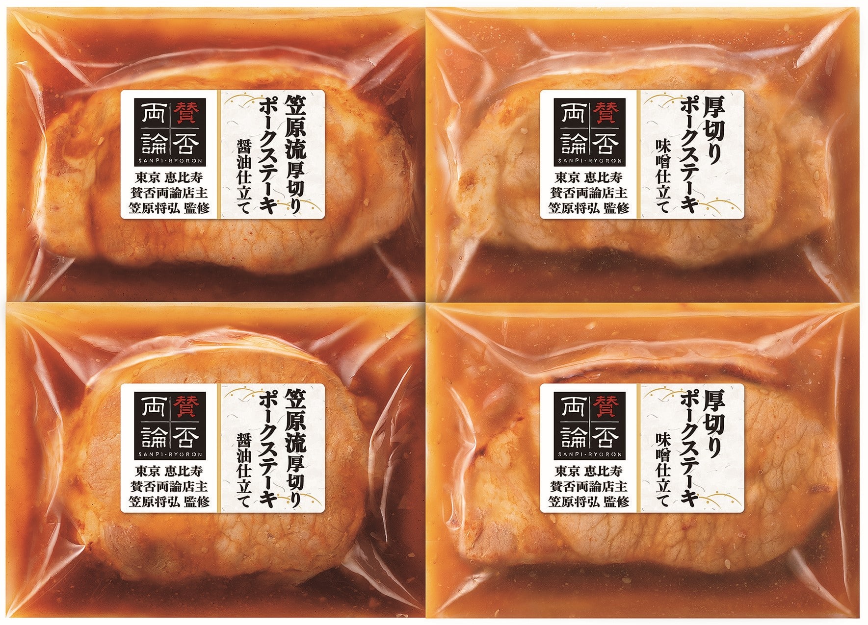 笠原流厚切りポークステーキ醤油仕立て200g×2、厚切りポークステーキ味噌仕立て200g×2