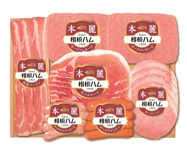 特選ロースハム70g、乾塩ベーコン56g、特選ポークウインナー80g、モッツアレラチソーセージ72g、生ハムロース75g、上級ポークソーセージ70g×2
