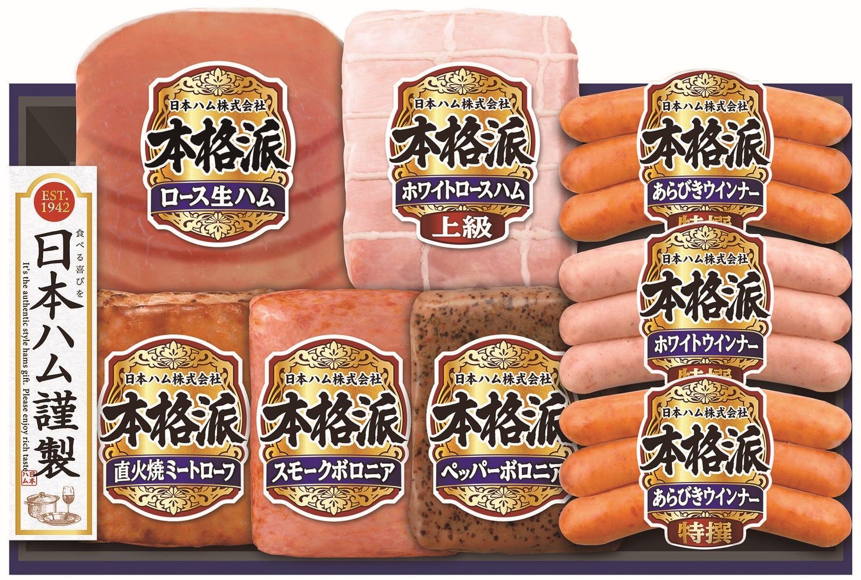 上級ホワイトロースハム340g、ロース生ハム27g、直火焼ミートローフ128g、スモークボロニア105g、ペッパーボロニア105g、特撰あらびきウインナー66g×2、特撰ホワイトウインナー66g