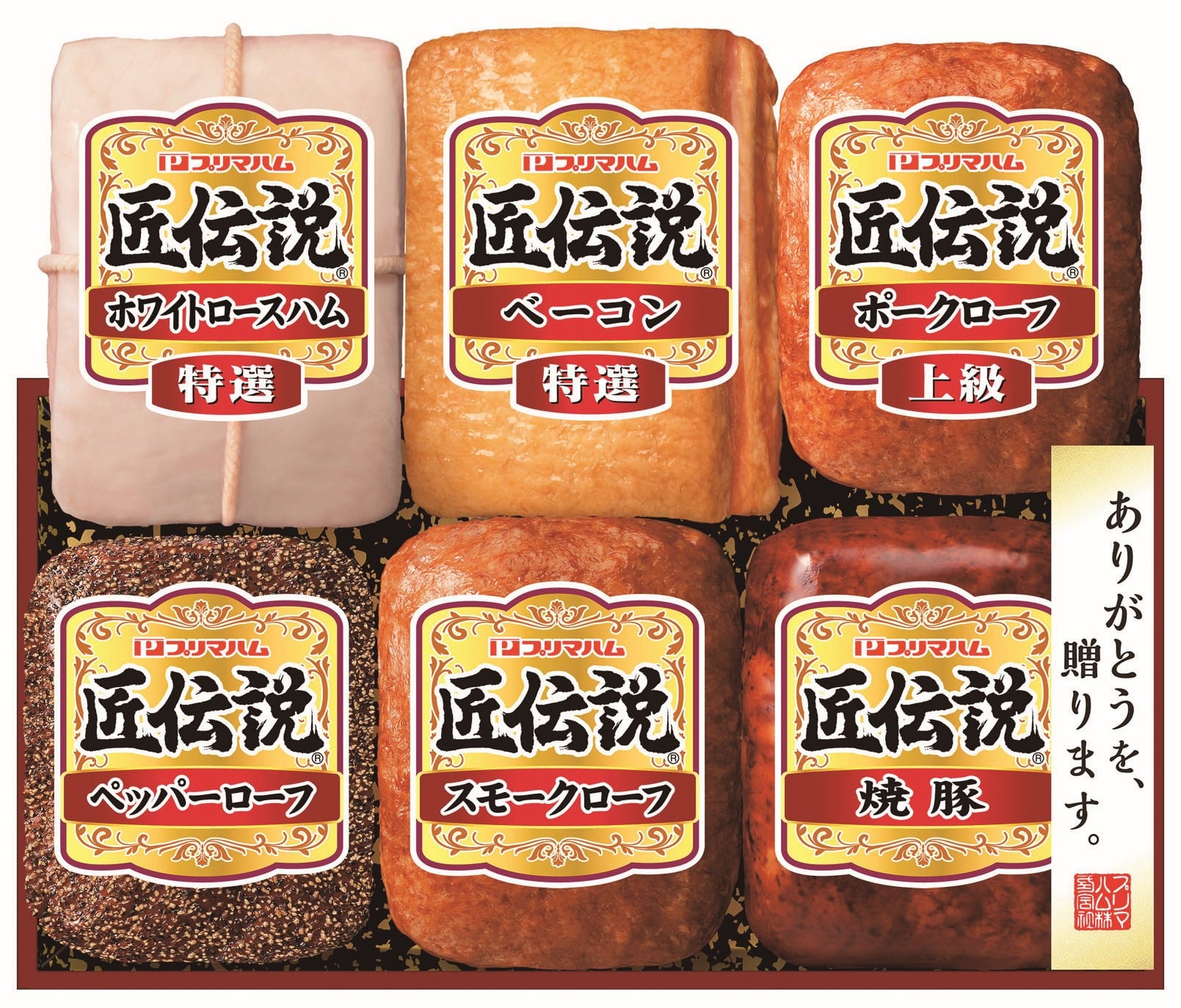 特選ホワイトロースハム360g、特選ベーコン160g、上級ポークローフ140g、ペッパーローフ140g、スモークローフ140g、焼豚160g