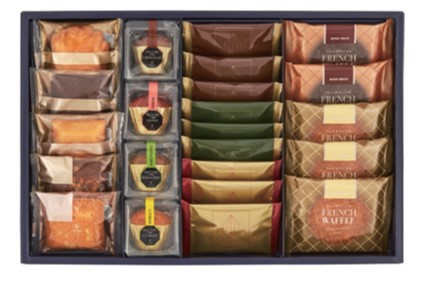 マドレーヌ、フィナンシェ、フィナンシェショコラ、ヌーヴェルガレット(バニラ、チョコ)、ミニトリュフケーキ、ミニトリュフケーキ(ベリー、ピスタチオ、レモン)、フレンチワッフル(バニラ)×3ディアマンド(アーモンド、抹茶アーモンド、チョコアーモンド各3)、フレンチワッフル(チョコ)×2 〈賞味期限:60日〉