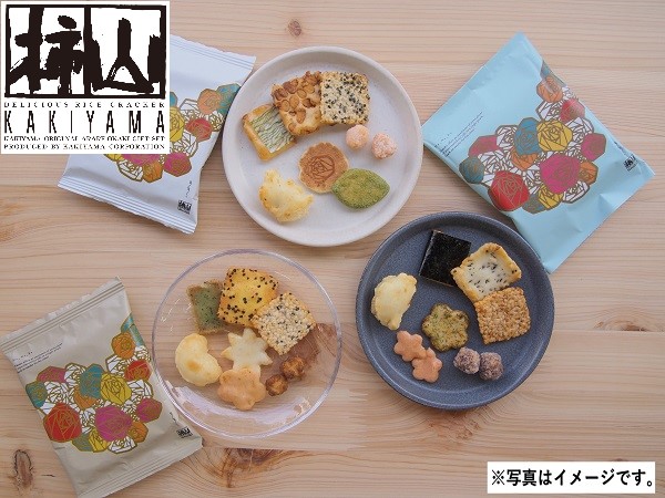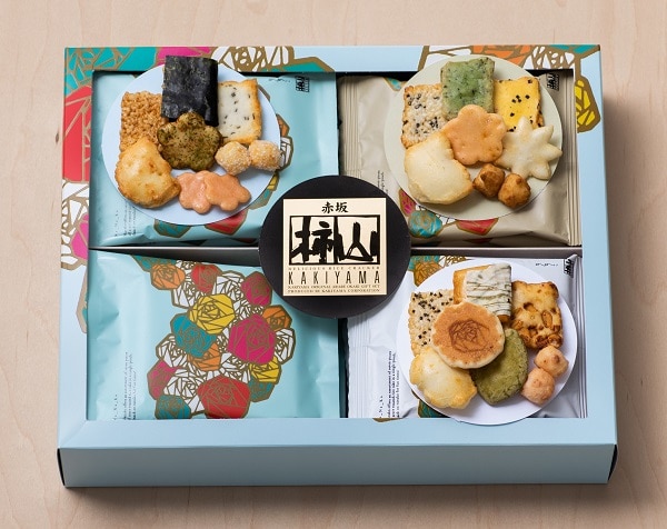 ■ステンドグラス調の花束を描いたパッケージに3種の食べきりのつつみに個性豊かなあられを7種類詰合せました。