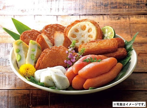 ■チーズ天30g・棒天20g×各3枚、しそ棒天20g×2枚、れんこん揚45g、枝豆天30g、桜島天50g、無着色辛子めんたいこ175g(ロシア又はアメリカ産原料を使用、福岡県にて加工)